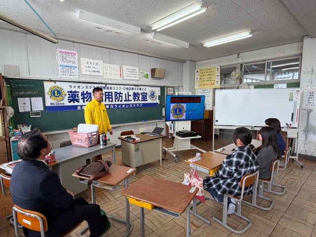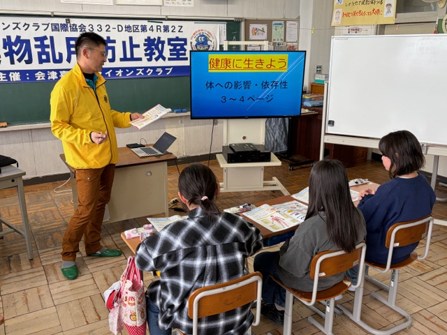 1月29日、喜多方市の喜多方一小で6年生を対象に薬物乱用防止教室を開きました。クラスごとに3回教室を開催。文教厚生・YCE薬物乱用防止委員会委員長の古川一裕Lが講師を務め、不正薬物使用の低年齢化など全国的な傾向や不正薬物が体に与える悪影響について分かりやすく説明しました。不正薬物に手を出すきっかけは身近な人に誘われるケースが多いとし「誘われても断る勇気を持つことが大切」と語りかけました。